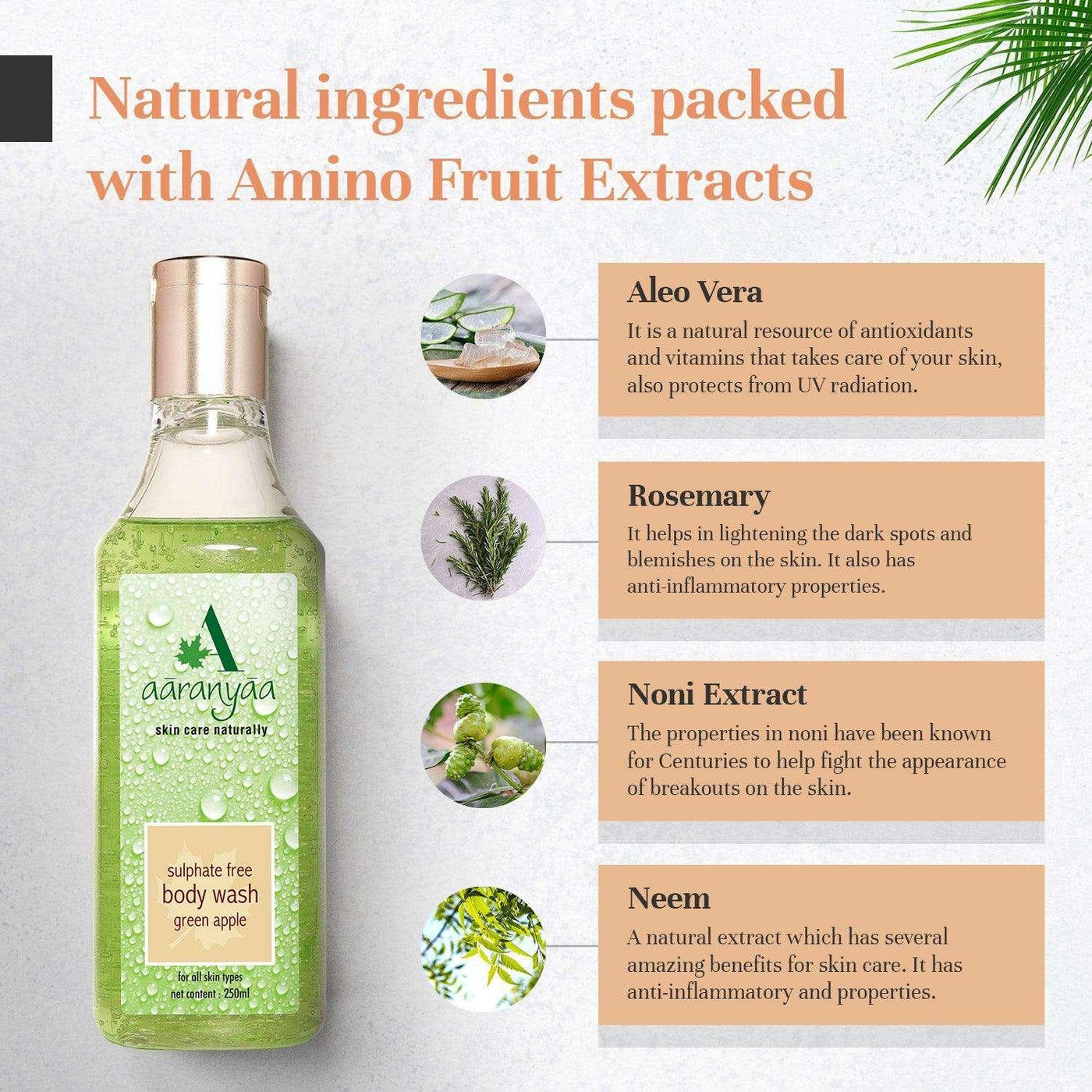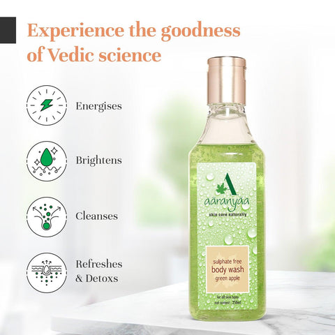 CLEANSING & EXFOLIATION : This Aaranyaa body wash thoroughly cleanses skin pores, removes grime, dirt and excess oil. It gently exfoliates dead cells and leaves skin soft, smooth, and moist.