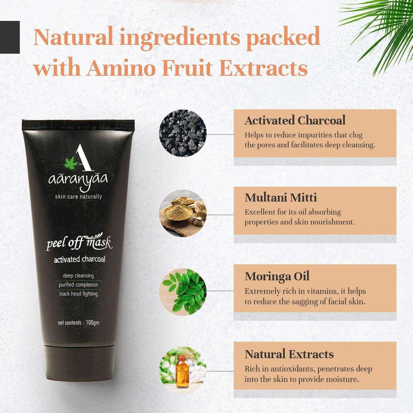 Pulls Out Dead-Skin and Blackheads: Aaranyaa Activated Charcoal Peel Off Mask draws out those stubborn black/whiteheads from the face that have been stuck forever. It exfoliates the skin and helps in removing dead skin cells giving the space for a younger looking skin to breathe.