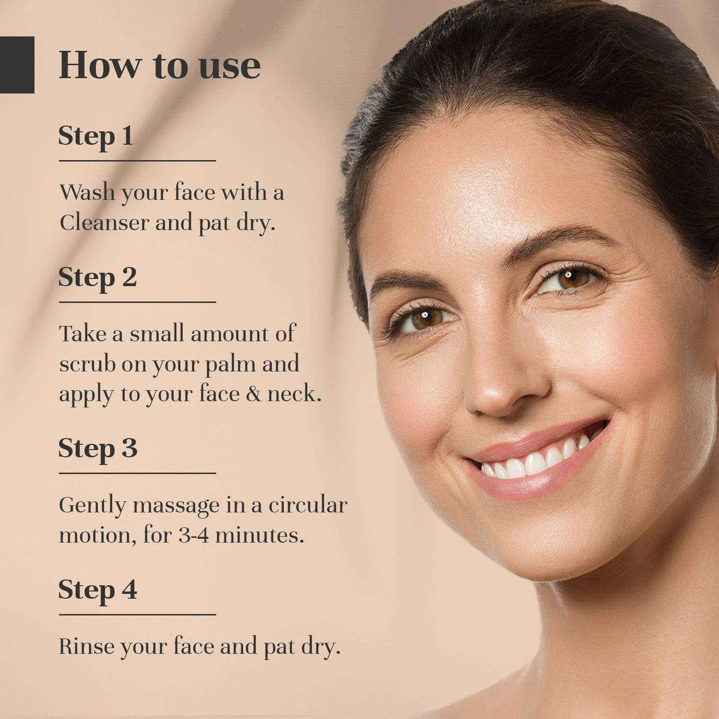EXFOLIATING CARE : Crushed WALNUT shell is a hard fibrous material ideal for exfoliation of dead skin cells. Face Scrub will exfoliate your skin and remove blackheads, impurities, and everyday exposure to pollution and de tan your skin. Natural extract will deeply exfoliate, polish and tone your skin. These superfoods leave you with fresh & glowing skin.