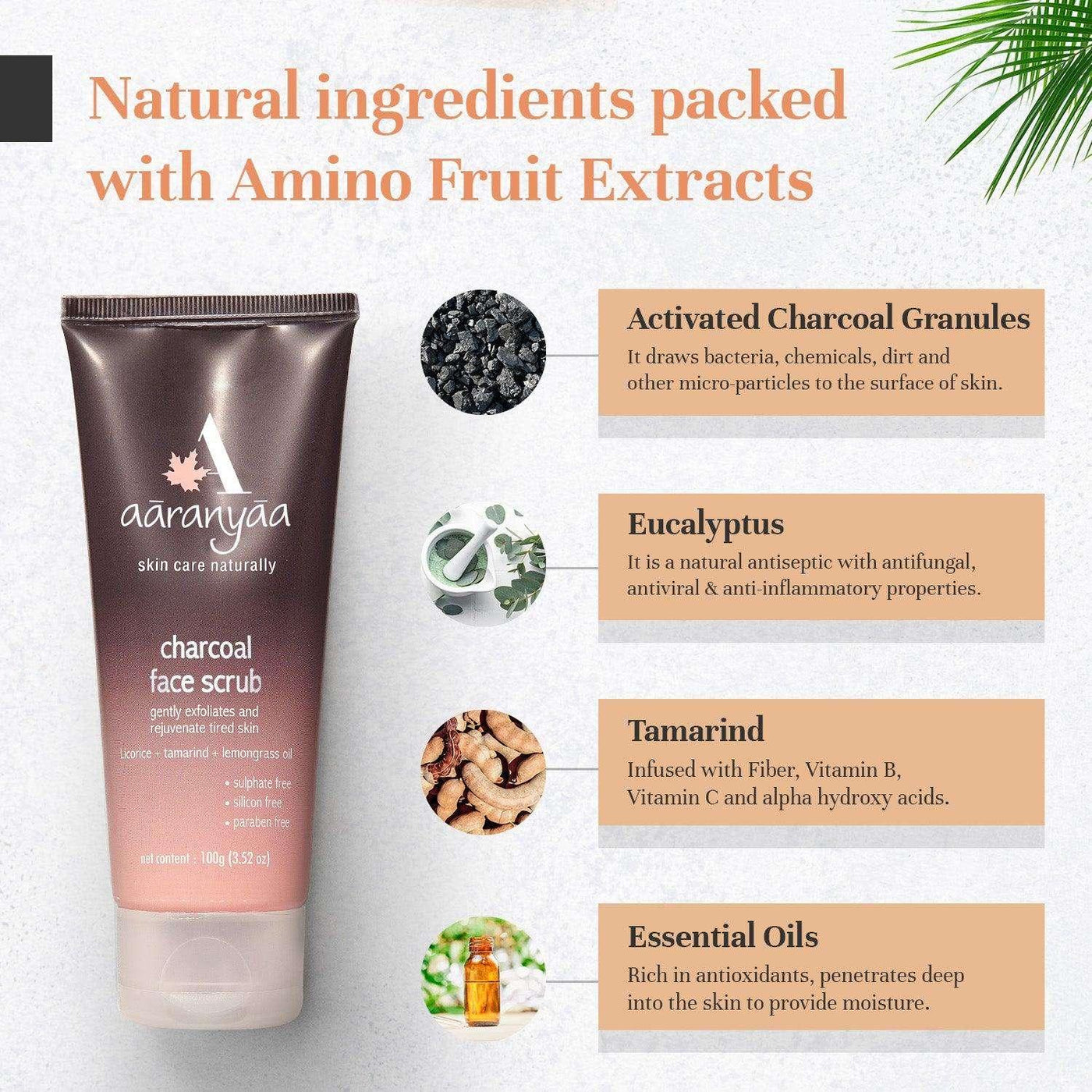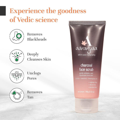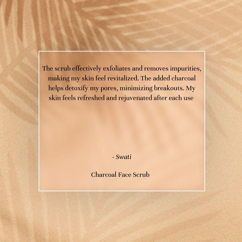 REJUVENATES & BRIGHTENS SKIN: infused with enegizing CHARCOAL+ TAMARIND exfoliation for fresh & glowing skin! Charcoal face scrub has fine-sized Charcoal particles to get rid of dead skin, impurities and tan. It is an ideal face scrub for oily skin and all other skin types. This tan removal scrub exudes the aroma of ubtan that will leave you craving for more. This scrub is the best face scrub for men &women.